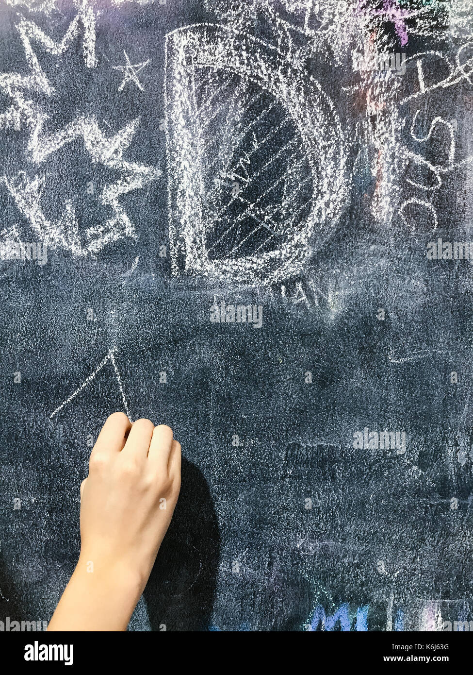 The drawings and inscriptions in colorful chalk on the blackboard :: Stock Photo