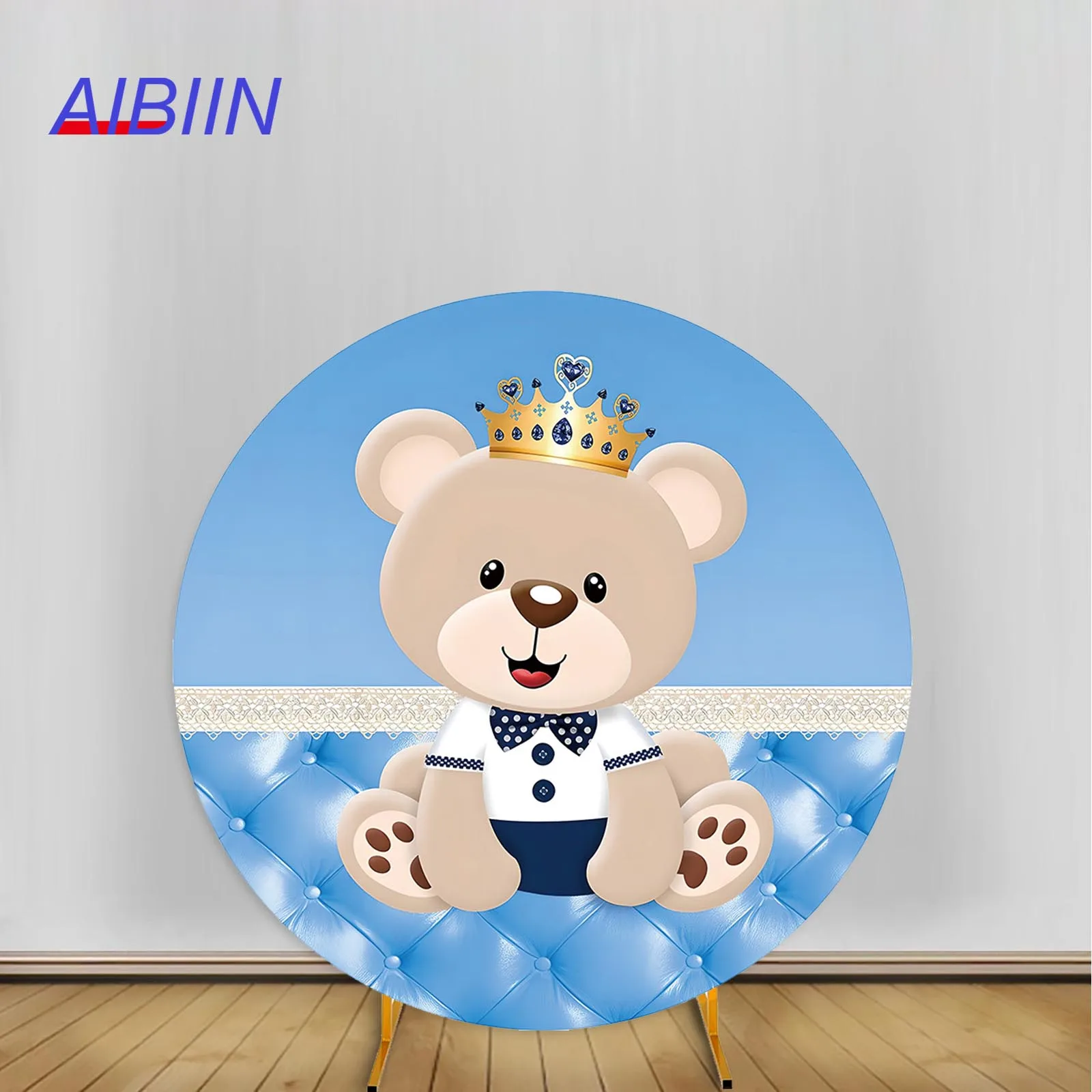 AIBIIN Cute Bear Round Arch Backdrops Cover Blue or Pink Boy or Girl Birthday Ba