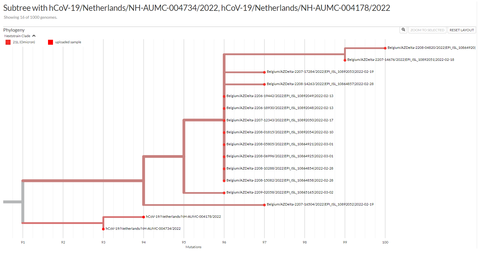 Potential recombined BA.2-BA.1.1 lineage in 22 (1.4%) sequences in Roeselare, Be